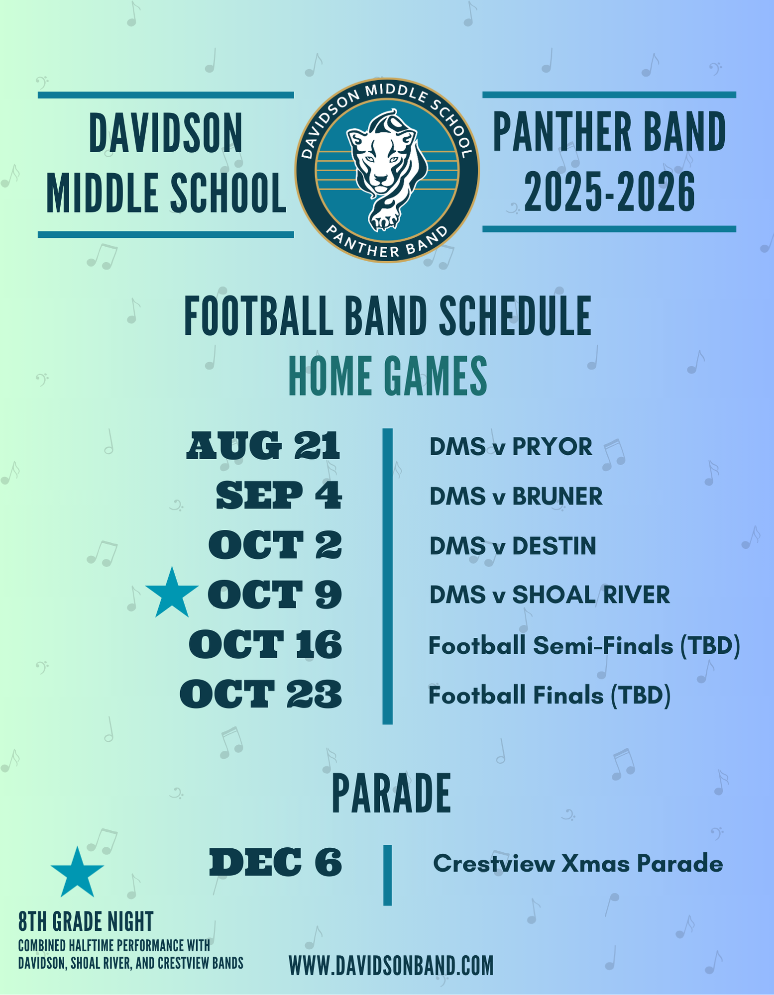 Acceptance into the All-State Middle School Concert Band is the greatest achievement a middle school student can receive! Simply auditioning is a huge accomplishment, and no matter the results, the process helps your student become a better musician and human! This is highly recommended for students entering grades 7/8. All-State auditions will take place on September 13th, 2025 at Milton HS. Audition times TBA.